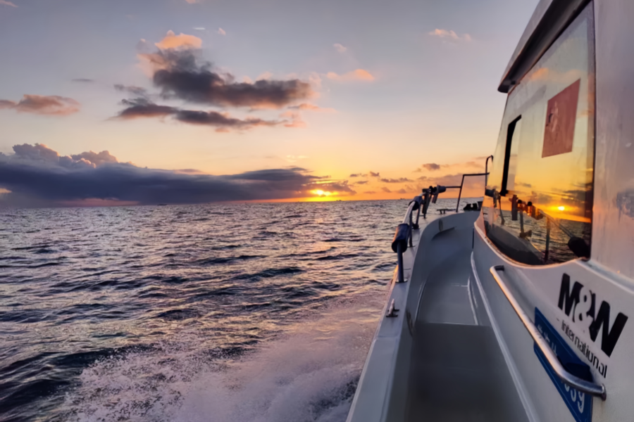 Watching the sunrise and fishing at sea